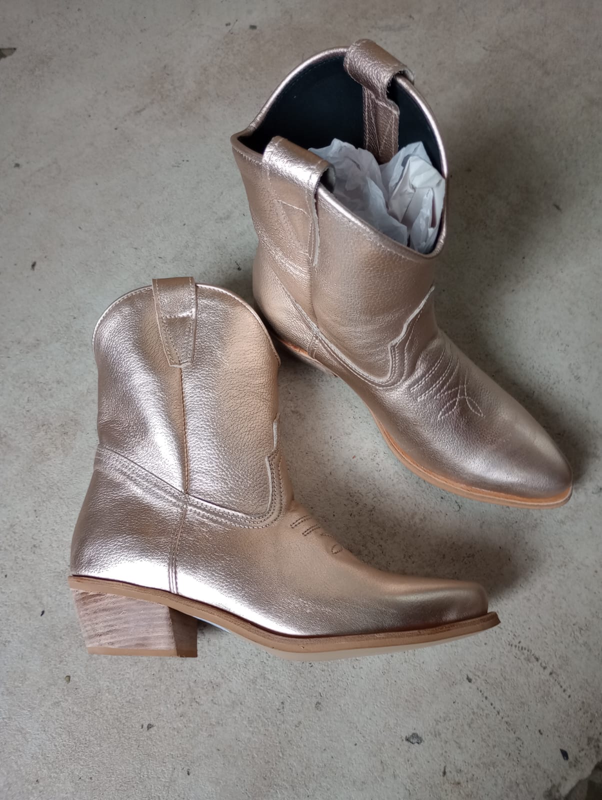 La Tejana Olimpo oro rosa es una de esas botas que iluminan cualquier look sin esfuerzo.